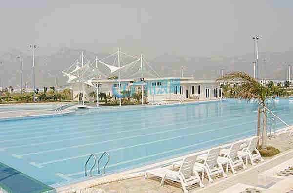 標(biāo)準(zhǔn)游泳池長50米,寬21米,奧運(yùn)會(huì)世界錦標(biāo)賽要求寬25米,另外還有長度只有一半即25米的游泳池稱為短池。水深大于1.8米。有8個(gè)泳道,每道寬2.5米,邊道另加0.5米。出發(fā)臺(tái)應(yīng)居中設(shè)在每泳道中心線上,臺(tái)面50厘米×50厘米。臺(tái)面臨水面前緣應(yīng)高出水面50至70厘米,臺(tái)面傾向水面不應(yīng)超過10度。游泳池的池岸寬一般出發(fā)臺(tái)端不小于5米,其余池岸不小于3米。正式比賽池,出發(fā)臺(tái)池岸寬不小于10米,其他岸寬不小于5米。國際也有25米游泳池的比賽。